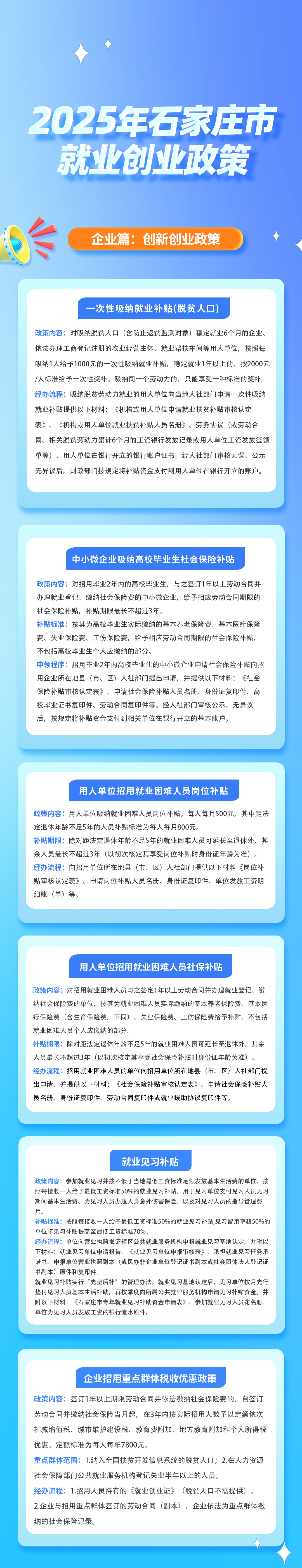 >> 2025年石家莊市就業(yè)創(chuàng)業(yè)政策-企業(yè)篇(創(chuàng)新創(chuàng)業(yè)政策)