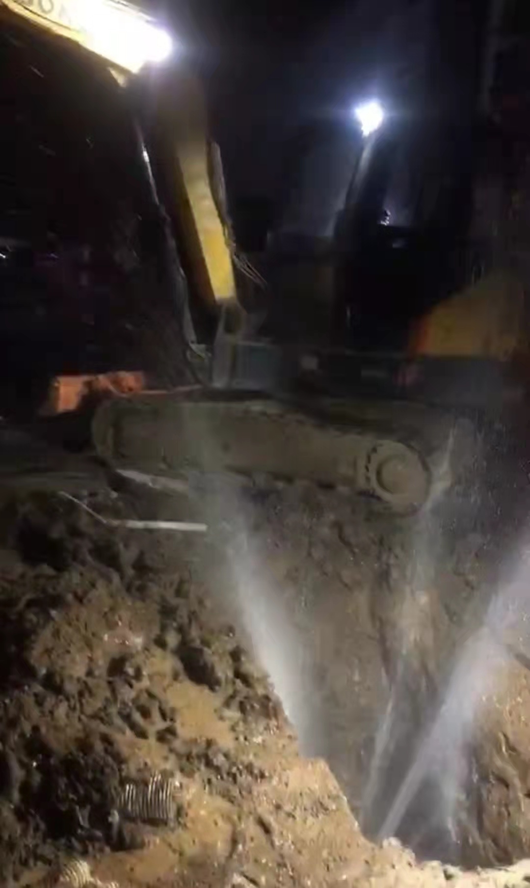 最強硬核搶修隊伍,實力擔當。2月16日下午17點47分,工程公司接到工單,位于騰揚嘉苑對面建筑安裝公司附近發現漏水現象。搶修人員立即趕往施工現場,在勘察現場具體情況的同時,對現場拉起警戒線。經勘查初步判斷此處漏損管線為DN200管線。搶修過程中采用鉤機、炮錘等對路面進行開挖,挖出一條長4米,寬1米,深2.5米左右的溝,因壓力關系,爆裂處噴射近5米高水柱,維修人員隨后采用水泵進行抽水,待具備施工作業條件時,工作人員用H200卡具進行固定,整個搶修用時約3小時,于晚9點搶修完畢。他們專業,他們頑強,他們無畏,他們敢拼,他們是一支名副其實的的硬核搶修隊伍。