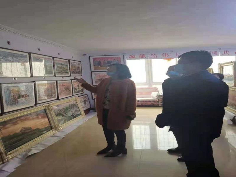 參觀中公司黨委張書記與作家張鳳蘭老師就一些作品進行了親切交流,并問候老人家近況,當?shù)弥獢[放展品的家里存在用水難題時,現(xiàn)場辦公聯(lián)系了公司營業(yè)分公司幫助解決自來水問題,保證展覽地點的用水,老人家表示非常感激。