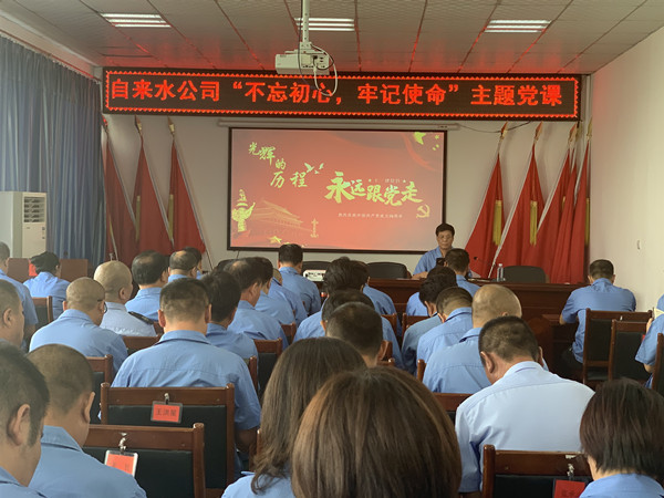 8月1日下午,市自來水公司黨委書記張旭濱以“不忘初心,牢記使命”為主題,為公司黨員干部上了一堂生動黨課,公司基層正職上干部、各黨支部委員、小組長及機關黨員80余人參加了學習。