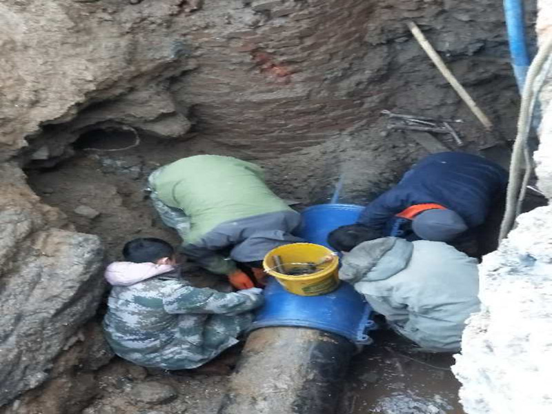 經現場查看,確定為DE400管線爆裂。維修人員首先關閉了管線閥門,公司經理李文生連夜組織召開現場會議,研究制定搶修方案。共計40余人參加了搶修,出動大、小搶修車輛15輛,并撒鹽3噸防止路面濕滑。