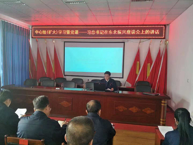 公司黨委書記張旭濱以《實現新時代東北全面振興》為題,從深刻領會習近平總書記考察東北的重大意義、深刻領會習近平總書記關于東北振興的總體要求、深刻領會習近平總書記關于東北振興的重點任務三個方面進行了詳細的解讀,并結合圖片、圖表等多種形式對習總書記在黑龍江建三江、齊齊哈爾查干湖、遼陽、撫順等地實地考察情況進行了深入淺出、生動鮮活的講解。他提出,我們要深刻學習領會習總書記的講話精神,抓落實、轉理念、塑環境,著打好振興發展組合拳,加快形成營商環境好、創新能力強、生力態環境優、發展活力足的振興發展新局面;要堅持以習近平新時代中國特色社會主義思想為指導,貫徹落實黨中央關于東北振興的一系列決策部署,一以貫之、久久為功,東北地區就一定能重塑環境、重振雄風,實現全面振興。