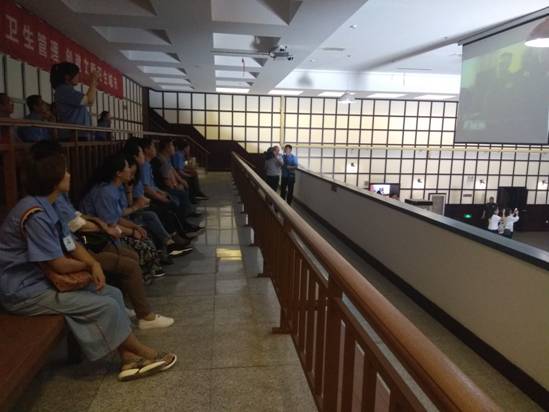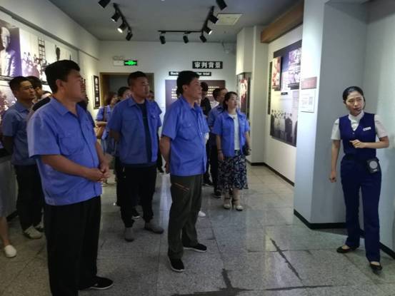 活動的第一站是沈陽審判日本戰犯特別軍事法庭舊址。據講解員介紹,它是新中國在1956年審判日本戰犯的法庭遺址。陳列展覽包括文字、照片、史料,文物、多媒體演示等展覽形式。展覽共分為“審判背景” “審判準備”“莊嚴審判”“尾聲”等四個部分,全面展示了日本戰犯在沈陽接受審判的整個過程,重現了1956年中國政府成立特別軍事法庭,對日陸軍中將師團長鈴木啟久、偽滿洲國國務院總務長官武部六藏等36名戰犯進行審判的歷史場景。黨員們在現場莊嚴地舉起右拳,面對黨旗宣誓,重溫入黨誓詞,一起回顧入黨初心。宣誓結束后,隨同講解員參觀了各個展廳及復原的公審日本戰犯場景蠟像,觀看了公審日本戰犯的影像紀錄片,這場令中國人民揚眉吐氣的審判,讓大家深刻感受到了中國對待日本戰犯的寬大胸懷,對祖國的敬佩之心油然而生。