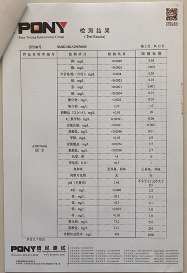老合臺(tái)凈水廠檢測(cè)報(bào)告: