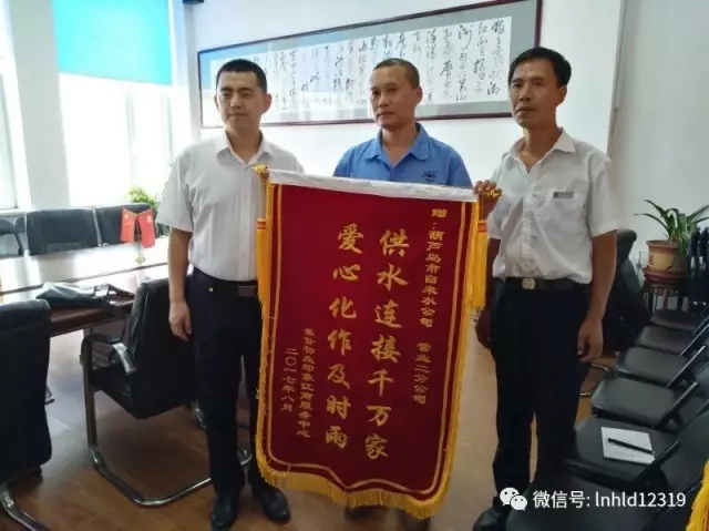“感謝你們!解決了我們的用水難題,你們的高效和貼心服務讓我們很受感動!”8月11日下午,印象江南小區物業公司的2名代表,笑容滿面的來到自來水公司,把一面印有“供水連接千萬家,愛心化作及時雨”的錦旗送到了自來水公司營業二分公司經理王紅星的手中,感謝自來水公司的領導和營業二分公司幫他們解決了困擾他們多日的供水問題。