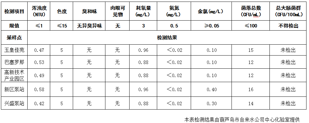 2017年7月5日葫蘆島市城市供水管網水質信息