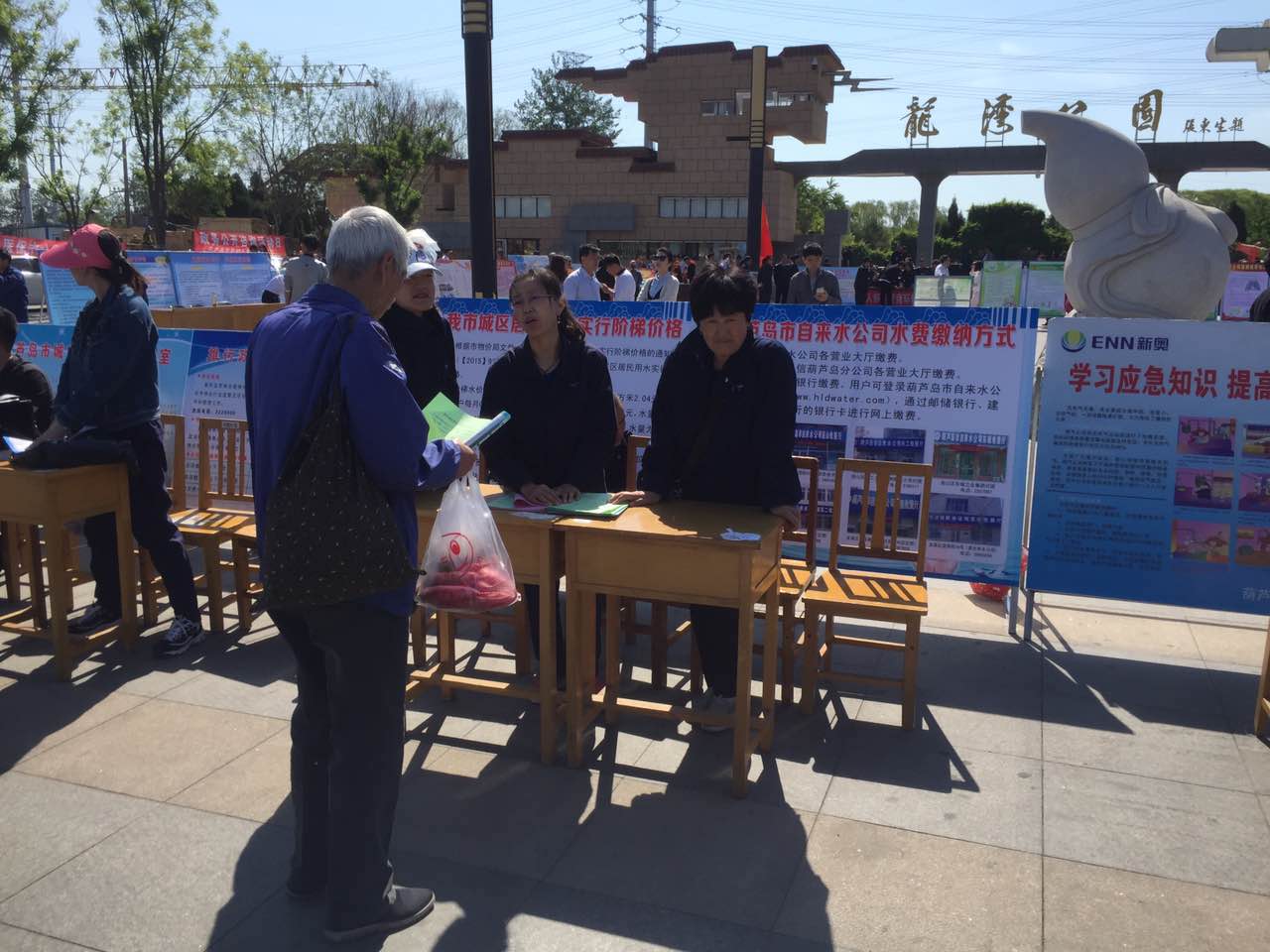 5月15日上午,自來水公司營業二分公司在葫蘆島市龍灣公園廣場開展政務公開日宣傳活動。今年政務公開日的主題是“推進政務公開、優化營商環境”。通過現場咨詢、展板、發放宣傳單等形式,向市民群眾公開了階梯水價、用戶交費指南、收費項目標準等相關內容,工作人員還現場接受市民用水咨詢,與市民面對面溝通交流,熱情認真的為市民答疑解惑。公司黨委書記張旭濱全程參與了宣傳活動。